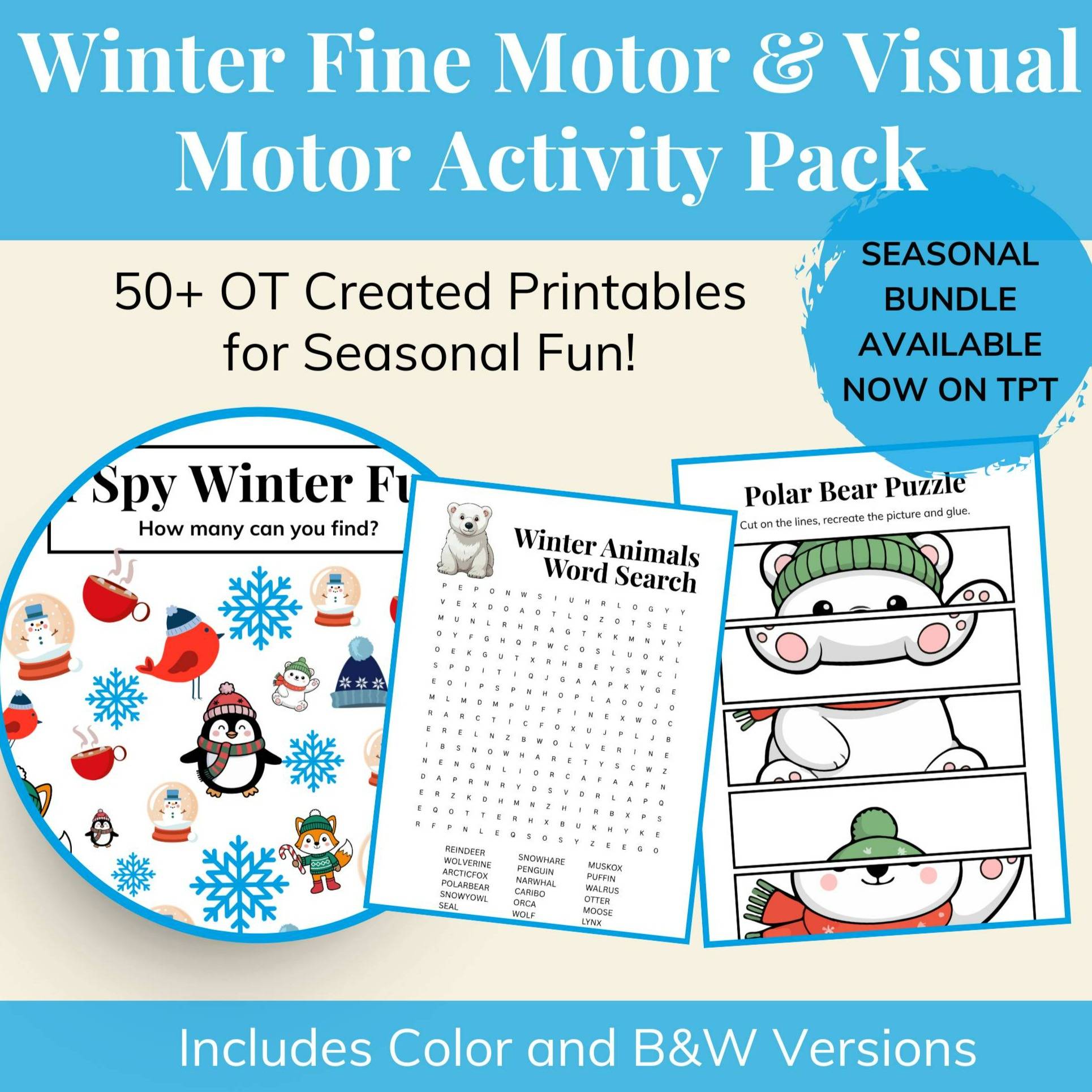 Bring a little seasonal wonder into your classroom or therapy sessions with this Winter Fine Motor & Visual-Motor Pack. Each page combines playful cold weather imagery with 50+ developmentally grounded activities that build the coordination, control, and confidence children need for handwriting, reading, and daily life skills.